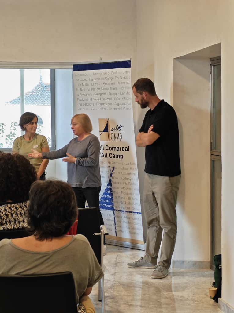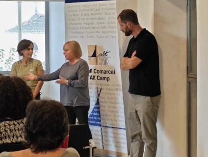 Tot seguit, la presidenta de l'IMDL Vallsgenera i regidora de l'Ajuntament de Valls, Rosa Ma Rovira, va introduir la jornada i va donar pas a la presentació de serveis i recursos a càrrec de Gemma Flores-Pons, tècnica de l'Ateneu Cooperatiu CoopCamp, i Elisa Segués, coordinadora tècnica de la XMESS, la xarxa de suport mutu i recursos per a l'impuls de l'Economia Social i Solidària.
