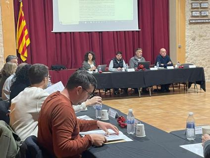 A la sessió també hi van participar tres representants d’Unió de Pagesos: David Sendra, coordinador comarcal; Martí Macias, responsable de regadius, i Santi Vives, tècnic de l’organització. Els representants del sindicat agrari van exposar la situació de sequera que afecta la comarca i van alertar de com la manca d’aigua està provocant una reducció de les collites, especialment en conreus tant representatius com la vinya i l’avellaner.