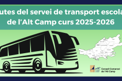 A continuació podeu consultar el recorregut, parades i horaris del servei de transport escolar de l'Alt Camp: